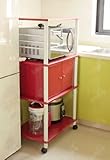 Chariot de cuisine avec trois plateaux et une petite armoire. Vous fournit des espaces supplémentaires dans la cuisine. Structure en métal est laquée en peinture blanche, avec deux plateaux en bois. Caractéristiques : Matériel : structure en métal, plateaux en bois, Dimension : L×P×H : 60cm×40cm×110cm ; Poids d'envoi : 6kg ; Couleur : comme les images ;