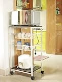 Meuble rangement cuisine roulant en bois, Chariot de cuisine de service, Etagère micro ondes, FRG10-Sch.