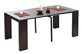Vous rêvez d'une table extensible design trois en un ? Le modèle CALEB est fait pour vous ! Sobre, moderne et très pratique, elle cumule les avantages : elle bénéficie d'un système de rallonges qui vous permet de passer très simplement d'une simple console à une table à manger 2 puis 4 à 6 personnes.C'est le modèle de table à manger simple et facile à vivre par excellence. La table extensible design CALEB est en MDF, dimensions ouvertes au total L185xP95xH75, poids total des colis 72 kg.Meuble à monter soi-même, montage facile.Existe en laqué blanc.